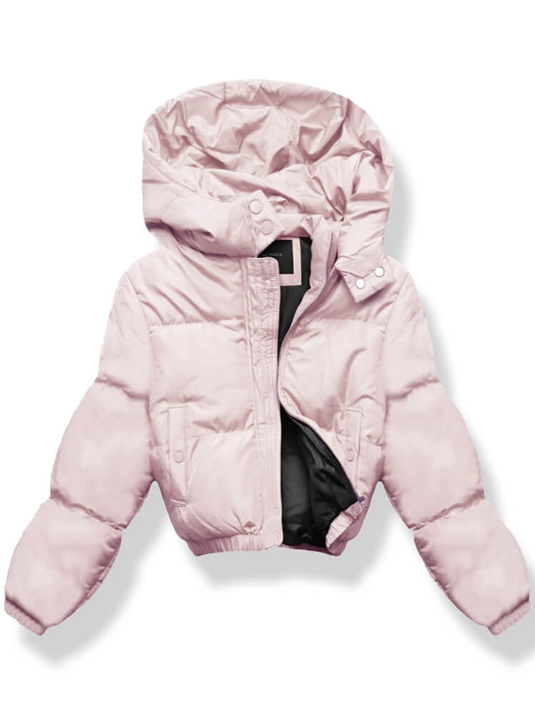 Perłowo różowa damska unikalnie pikowana kurtka ze ściagaczami