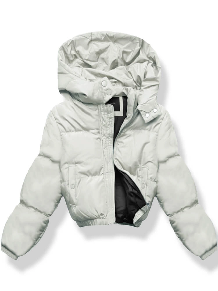 Beżowa zimowa damska kurtka z kapturem