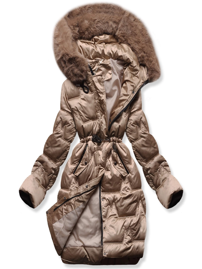 Jasnobrązowa rewelacyjna damska zimowa kurtka z kapturem netmoda