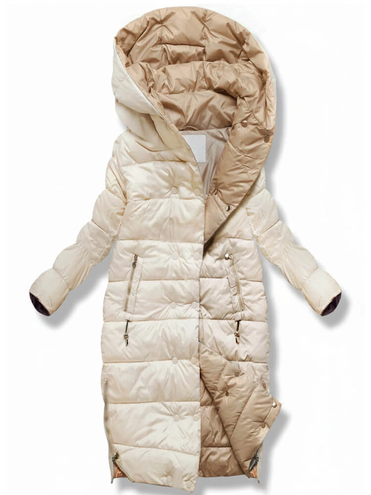 Jasnobeżowa zimowa długa kurtka płaszczyk