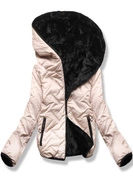 Różowo szara dwustronna zimowa damska kurtka z kapturem