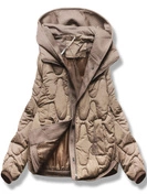 Beżowa śliczna pikowana zimowa kurtka damska z kapturem