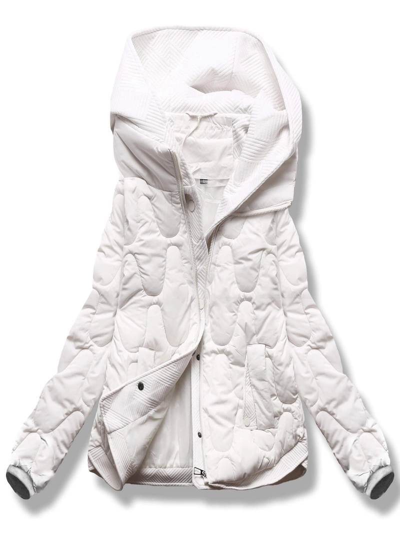 Ecru krótka zimowa kurtka damska bombka z kapturem