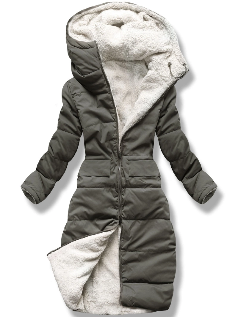 Grafitowozielona dwustronna ciepła pikowana zimowa kurtka płaszczyk z kapturem