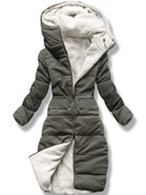 Khaki pikowana zimowa kurtka płaszcz z kołnierzem na kożuchu