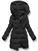 Czarny długi zimowy pikowany płaszczyk kurtka z kapturem