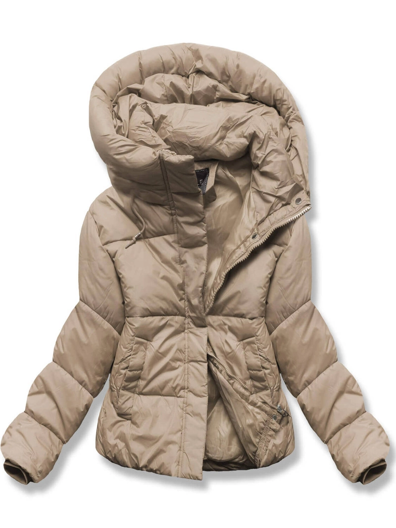 Beżowa krótka pikowana zimowa kurtka z kapturem