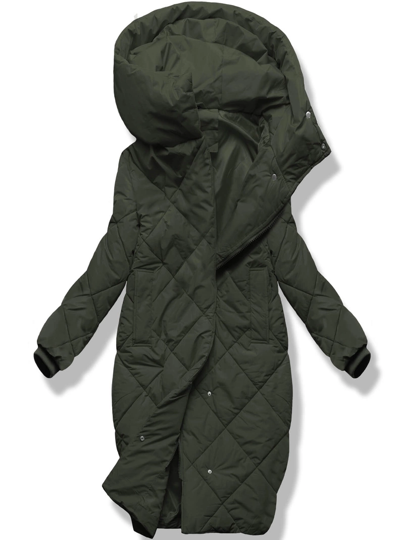 Army pikowana w karo damska kurtka płaszczyk zimowy z kapturem