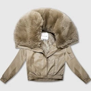 Beżowa skórzana damska krótka kurtka futerko