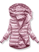 Różowa zimowa kurtka pikowana z kapturem z długimi ściągaczami zapinana na suwak