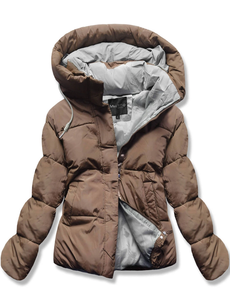 Ciemnobeżowa kapitalna pikowana zimowa kurtka