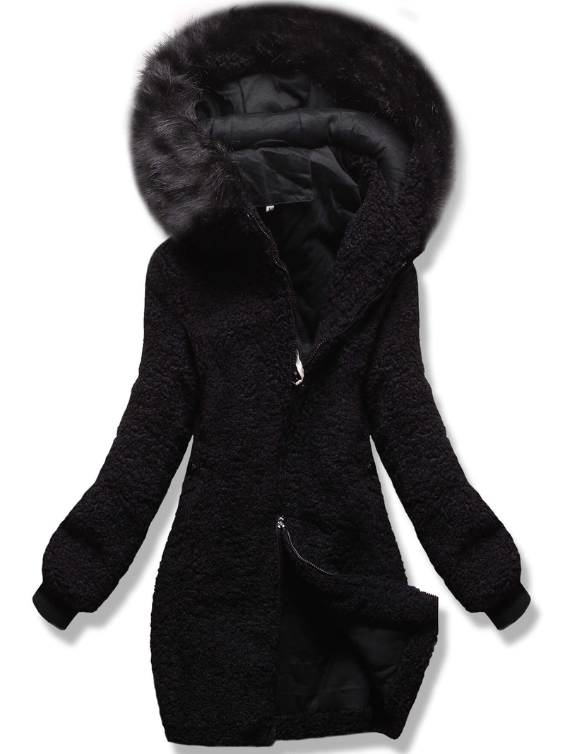 Czarna zimowa kurteczka z kapturem baranek