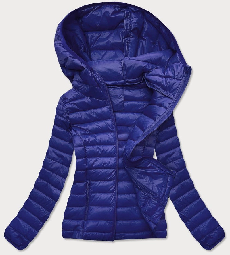 Granatowa dwukolorowa damska kurtka pikowana z kapturem