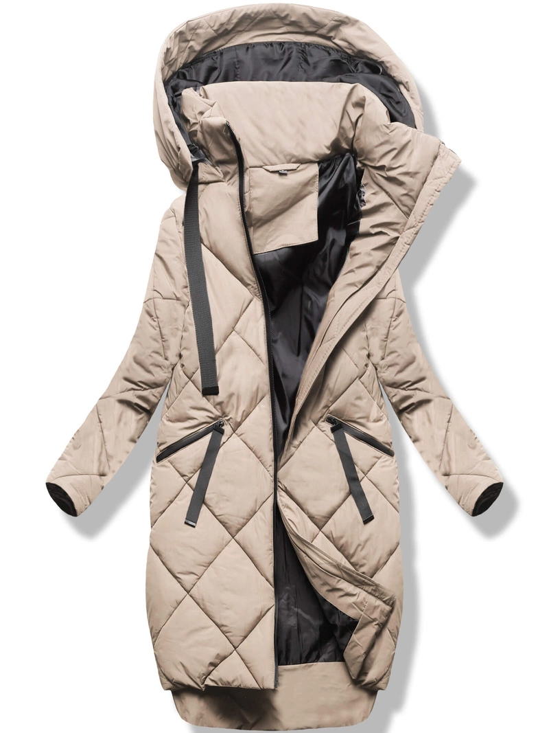 Beżowa pikowana damska kurtka z bocznymi rozcięciami