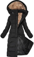 Czarna długa zimowa kurtka damska płaszczyk z futrem