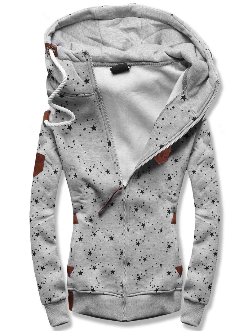 Szara w gwiazdki bluza damska z kapturem zapinana na suwak