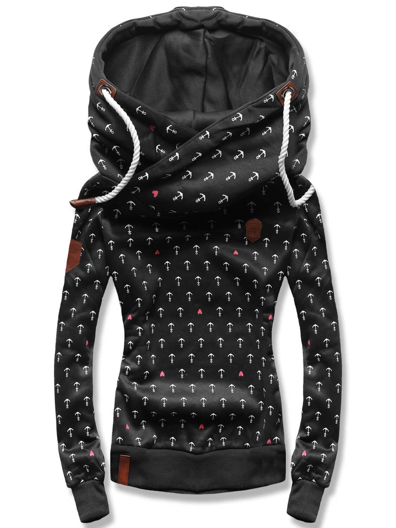 Czarna damska rozpinana bluza z kapturem w kotwiczki