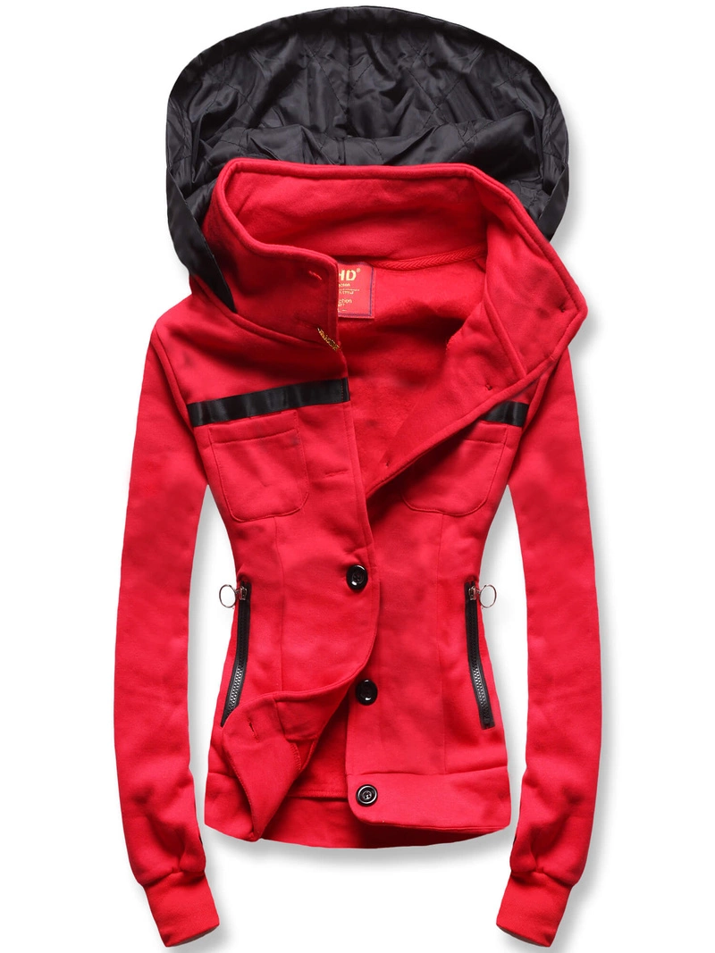 Czerwona świetna krótka bluza damska z kapturem zapinana na guziki
