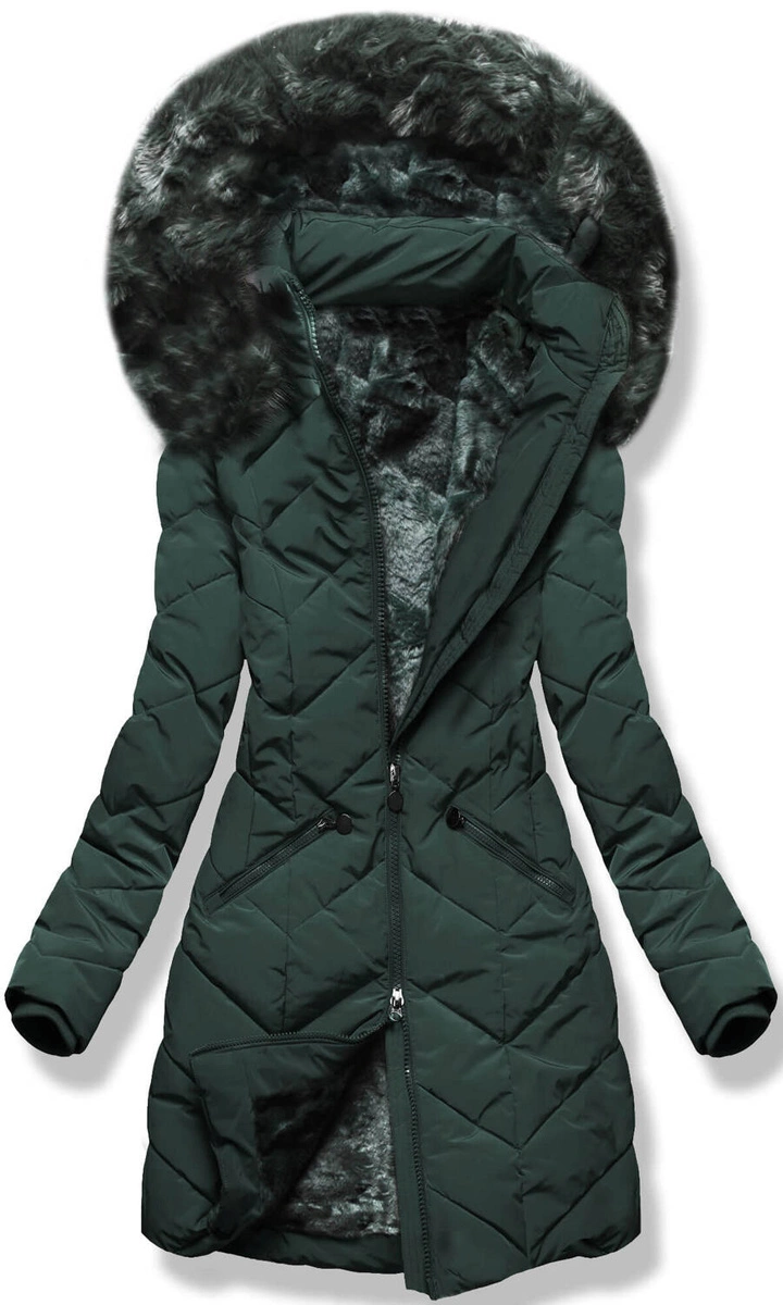 Zielona zimowa pikowana kurtka płaszczyk + futro