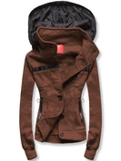 Brązowa świetna krótka bluza damska z kapturem zapinana na guziki