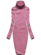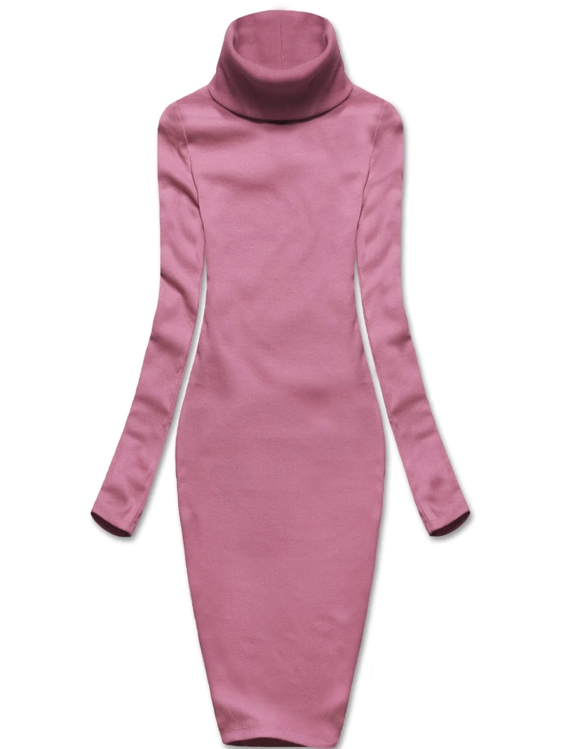 Ciemnopudrowa, elegancka, prążkowana sukienka klasyczna, basic z golfem