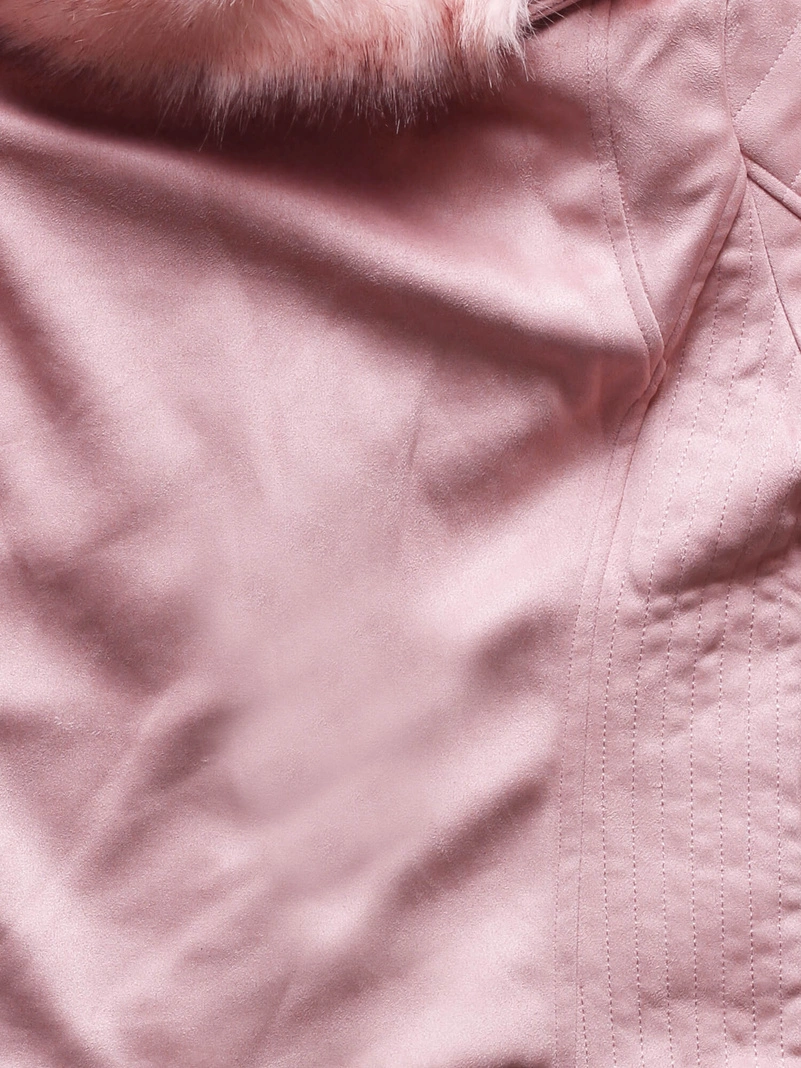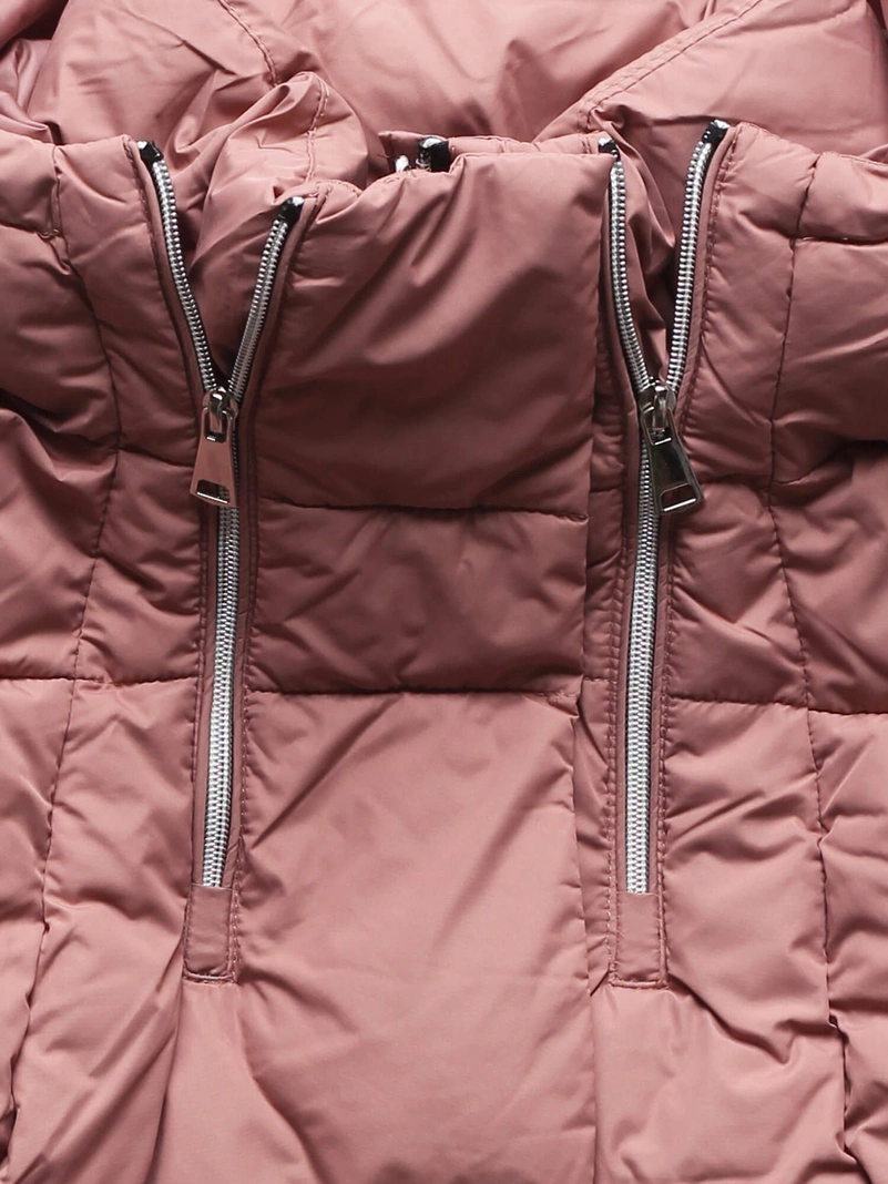 Krótka kurtka damska zimowa z zamkami antyczny róż (7750)