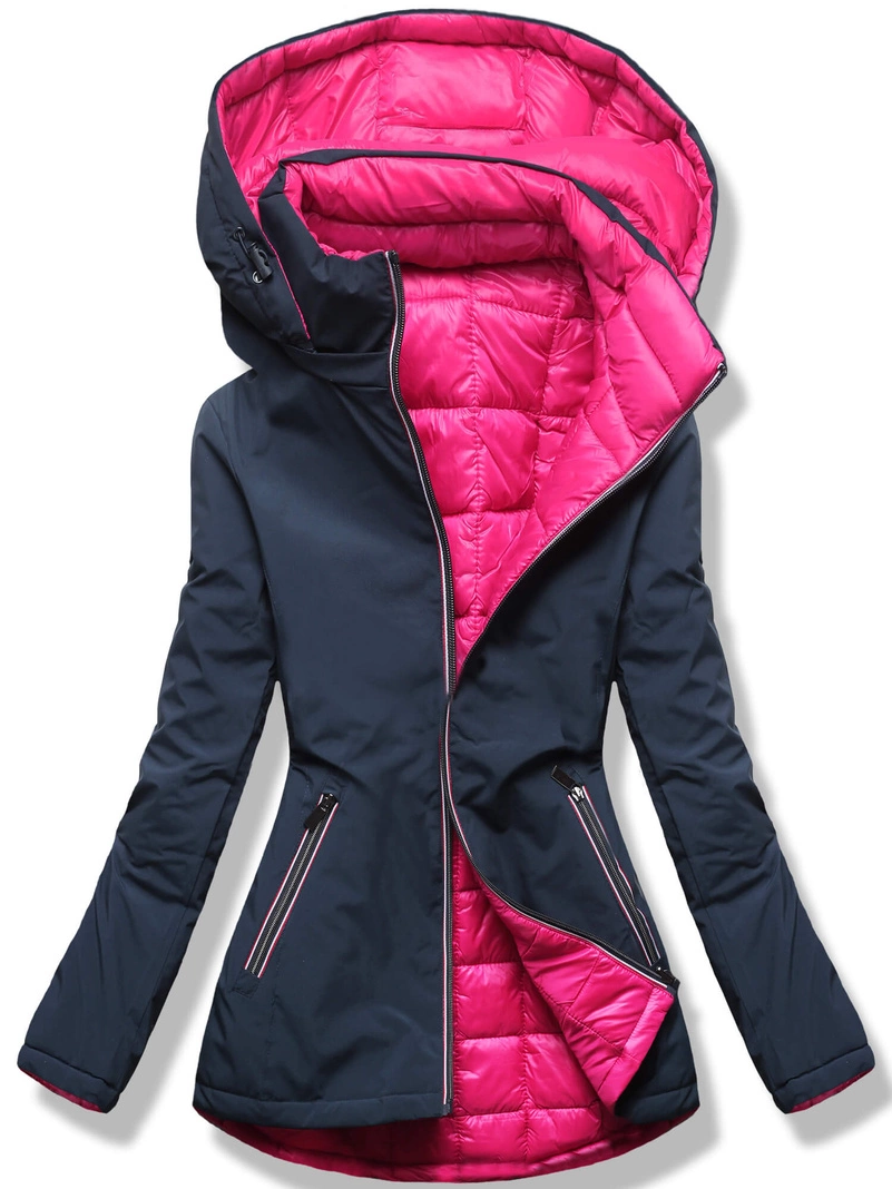 Granatowo-różowa damska przejściowa kurtka dwustronna