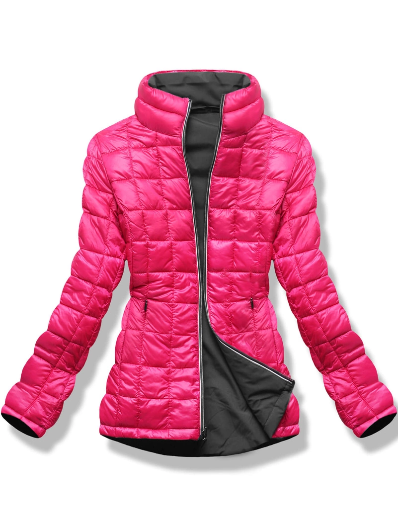 Szaro-różowa damska przejściowa kurtka dwustronna