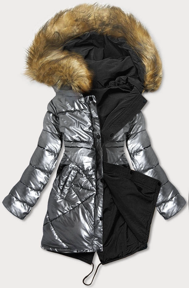 - Dwustronna zimowa pikowana kurtka parka płaszczyk z kapturem
