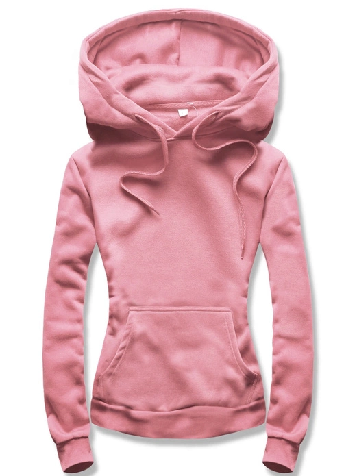 Pudroworóżowa damska bluza dresowa z kapturem kangurka