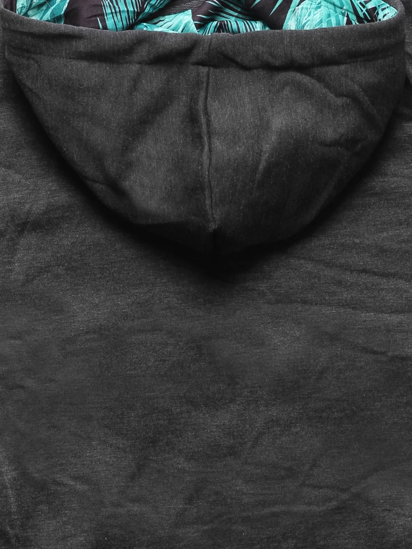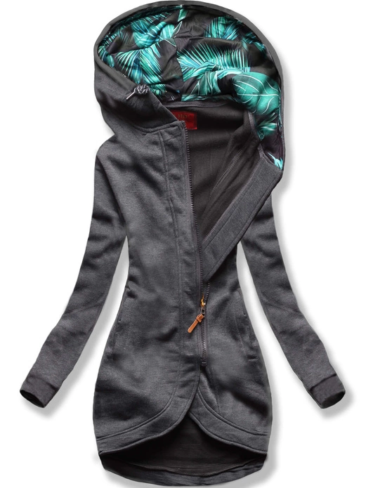 Ciemnoszara zapinana na suwak damska bluza z kwiecistym kapturem