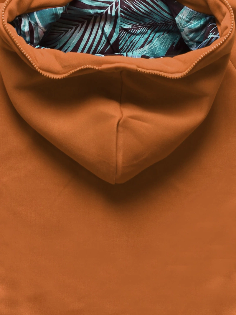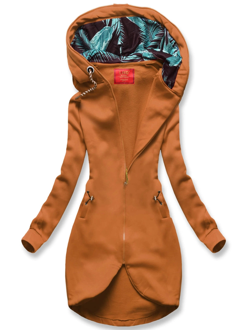 Karmelowa asymetryczna damska długa bluza z kapturem