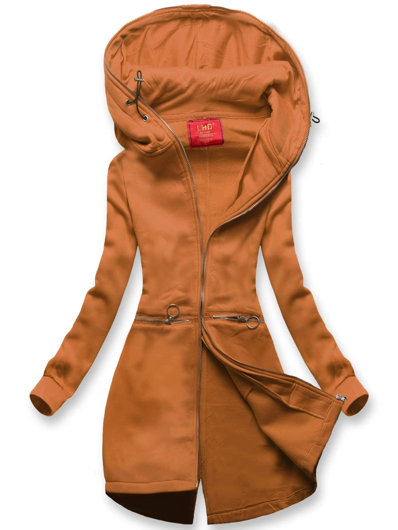 Opinie o Ceglana unikalna damska długa bluza z kapturem