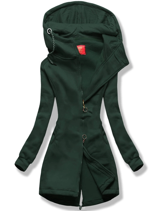 Ciemnozielona kapitalna długa damska rozpinana bluza z kapturem