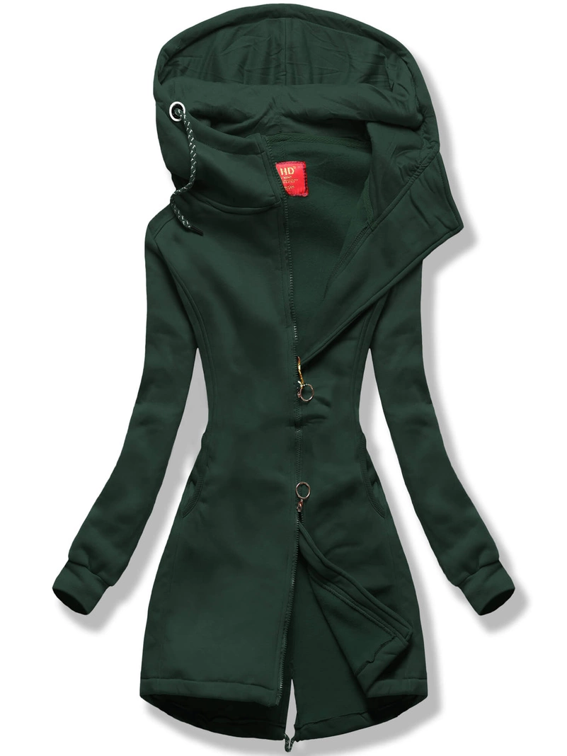 Opinie o Ciemnozielona kapitalna długa damska rozpinana bluza z kapturem