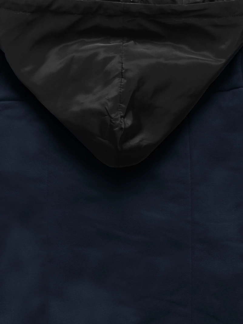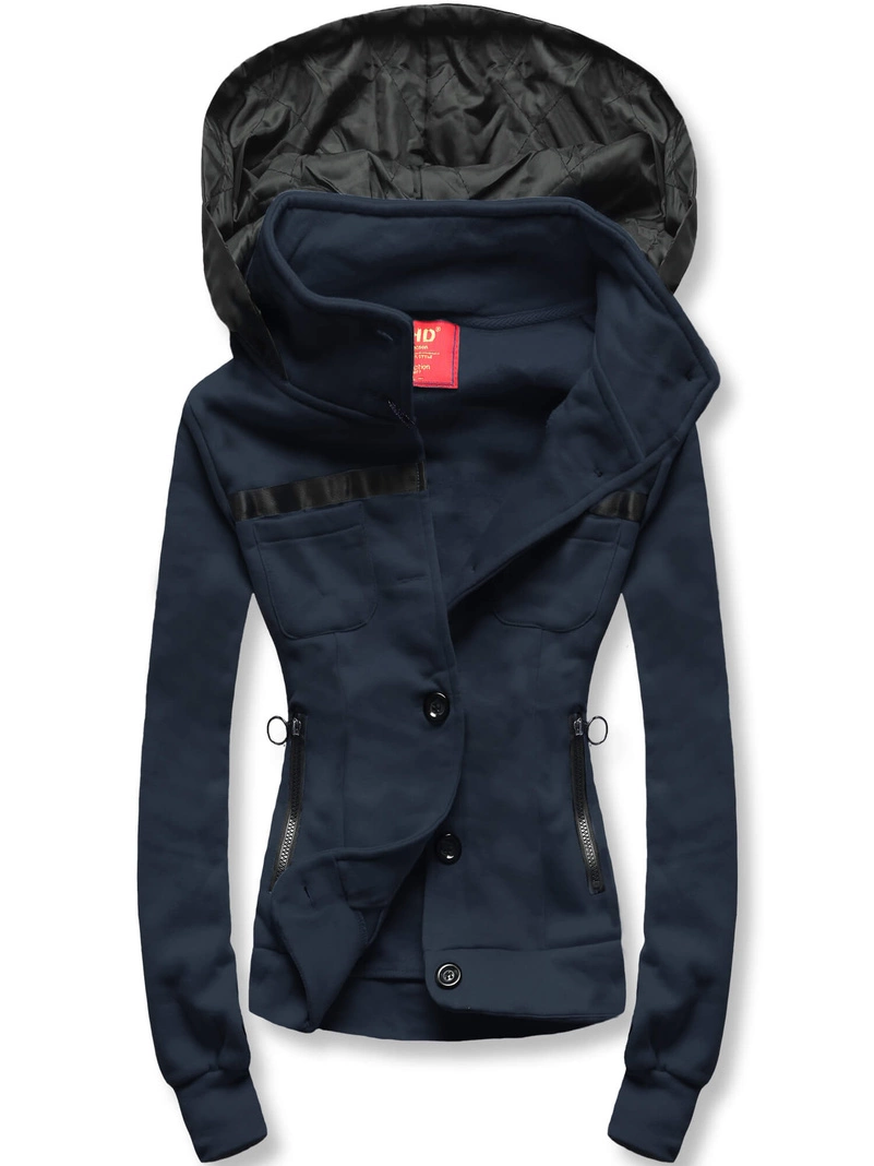 Granatowa świetna krótka bluza damska z kapturem zapinana na guziki