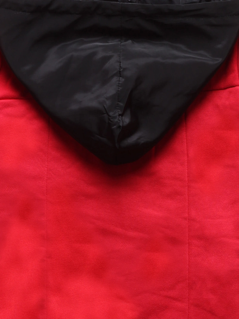 Czerwona świetna krótka bluza damska z kapturem zapinana na guziki