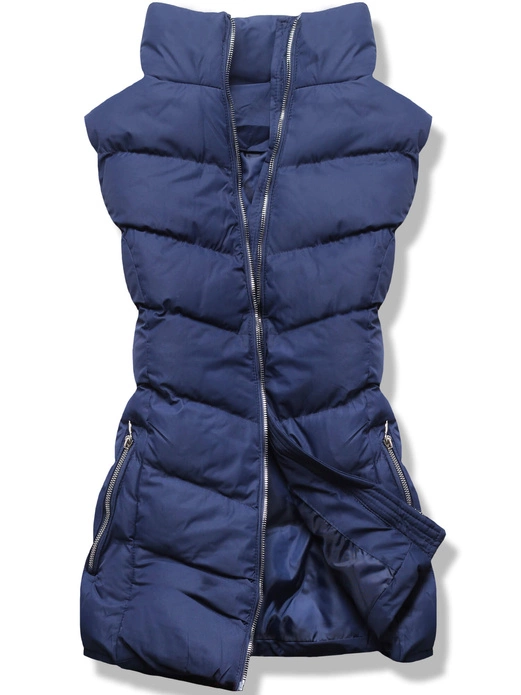 Granatowy puchowy pikowany bezrękawnik z kołnierzem kamizelka ze stójką