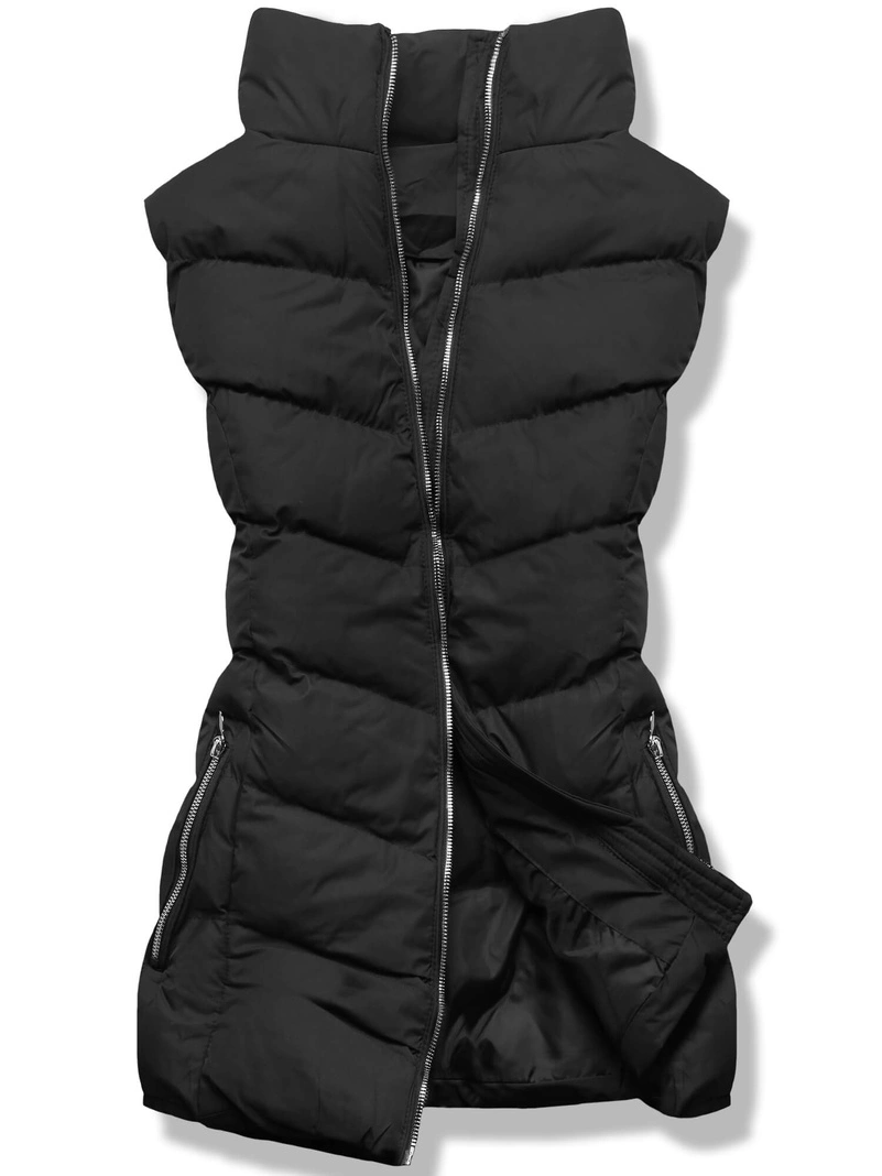 Czarny puchowy pikowany bezrękawnik z kołnierzem kamizelka ze stójką