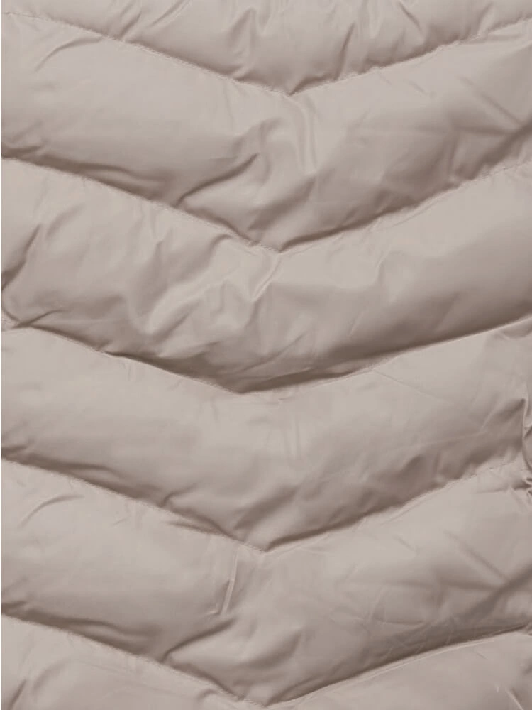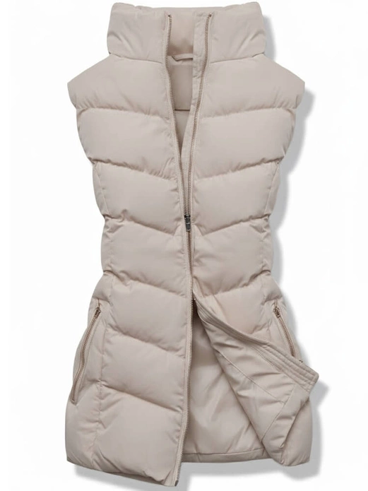 Beżowy puchowy pikowany bezrękawnik z kołnierzem kamizelka ze stójką