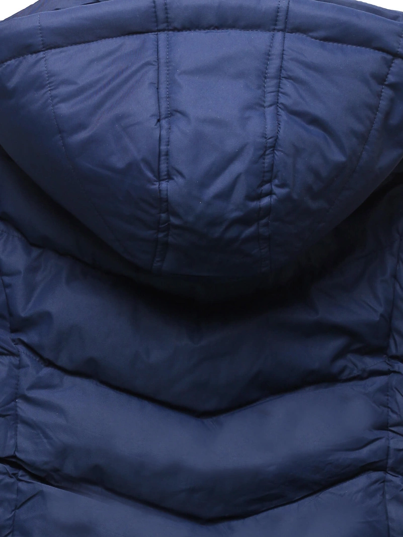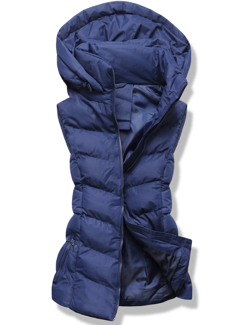 Opinie o Granatowy puchowy pikowany bezrękawnik kamizelka z kapturem