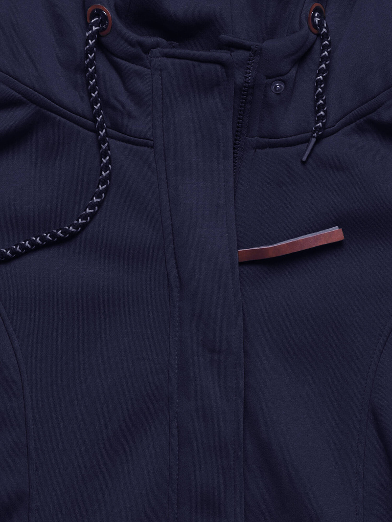 Granatowa długa bluza z zamszową wstawką zapinana na suwak z kapturem