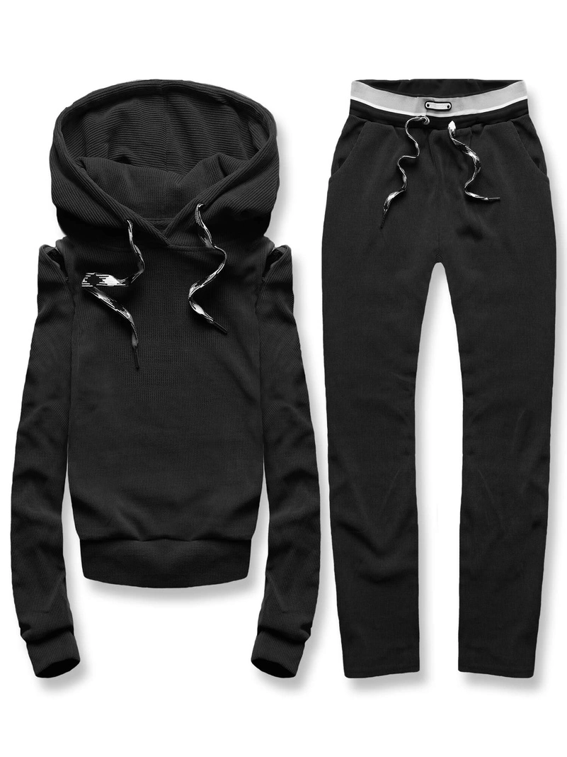 Opinie o Czarny dres w prążek wygodny komplet z kapturem