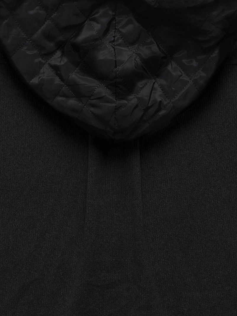 Czarna bluza w prążki z łatami i z kapturem zapinana na suwak