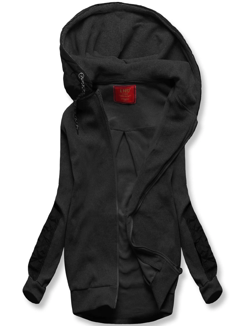 Opinie o Czarna bluza w prążki z łatami i z kapturem zapinana na suwak