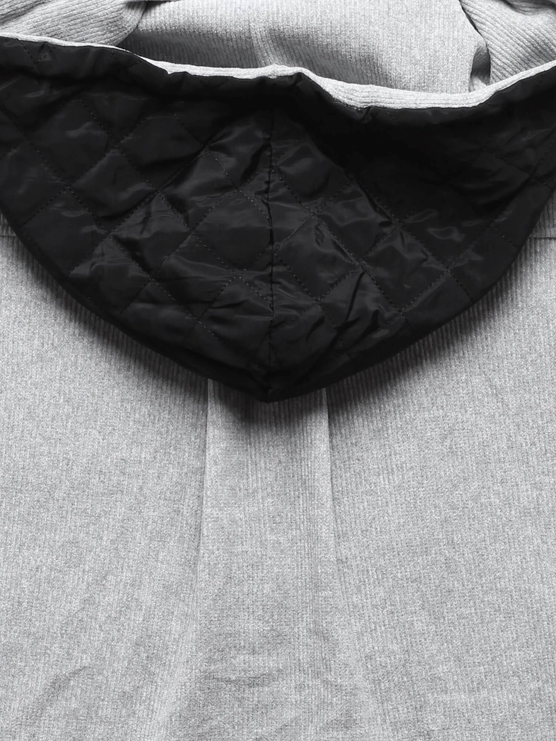 Opinie o Jasnoszara bluza w prążki z łatami i z kapturem zapinana na suwak