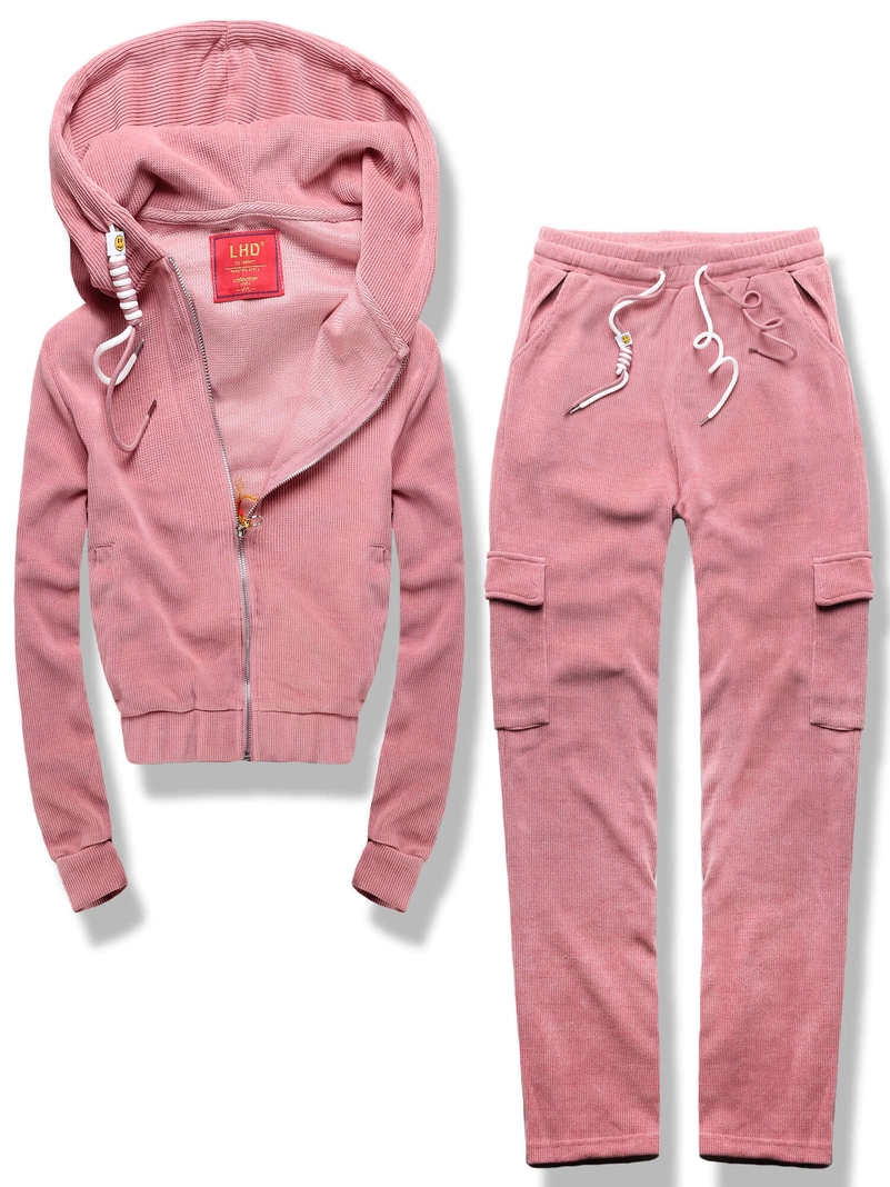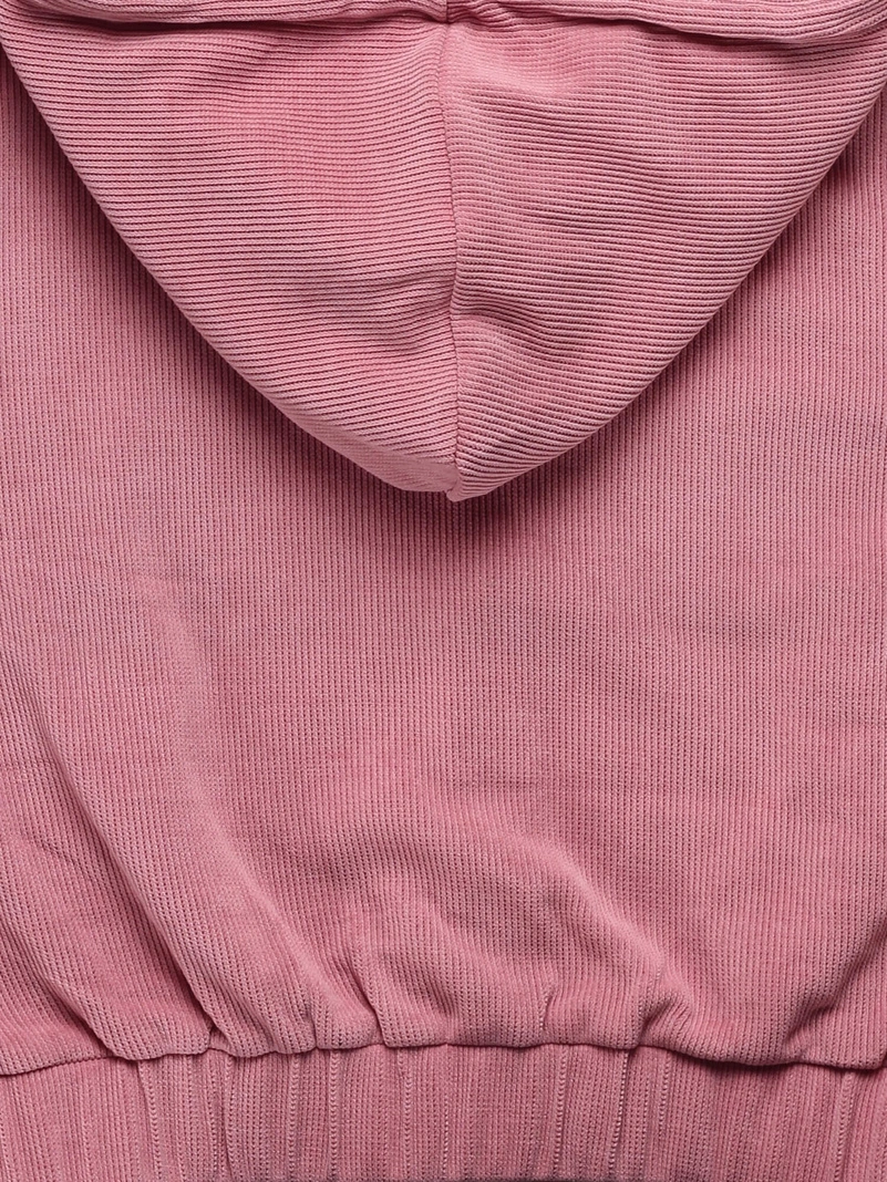 Opinie o Pudrowy prążkowany dres komplet z kapturem