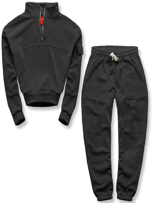 Opinie o Czarny dres komplet w prążek fason ze stójką