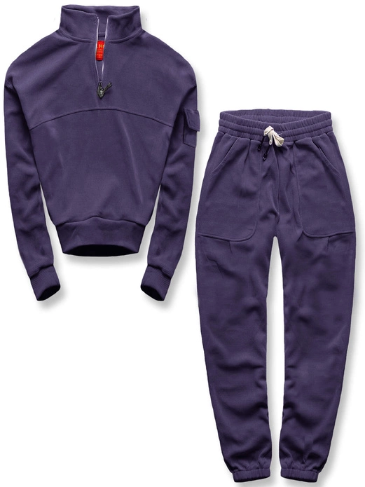 Opinie o Fioletowy dres komplet w prążek fason ze stójką