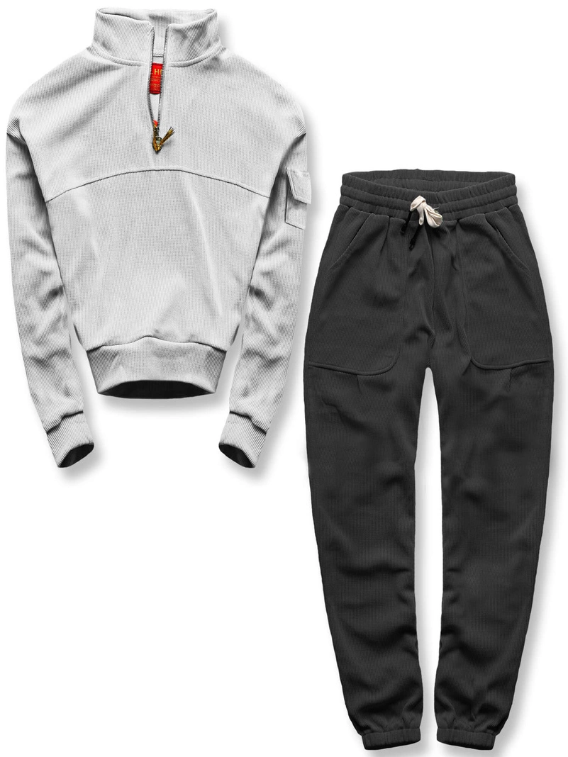 Opinie o Jasnoszary dres komplet w prążek fason ze stójką